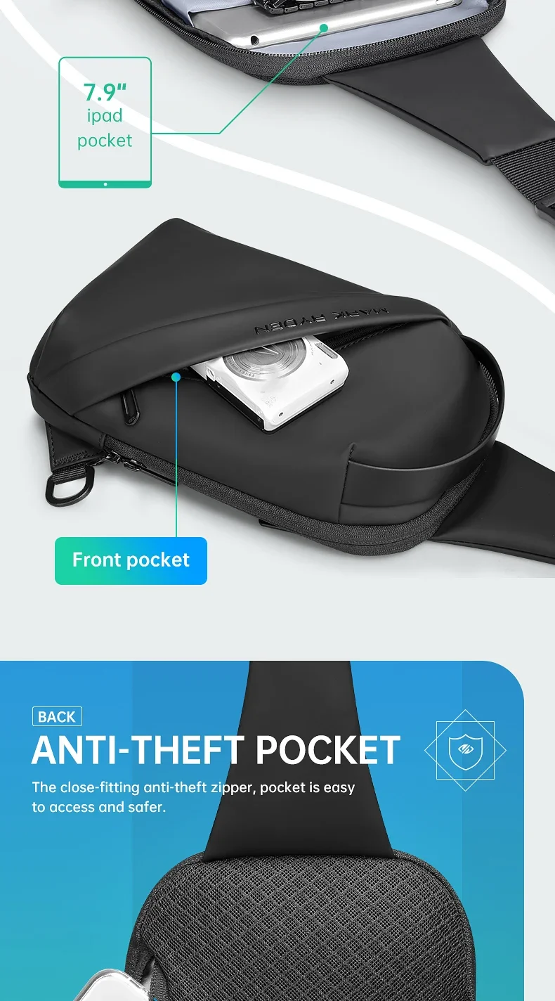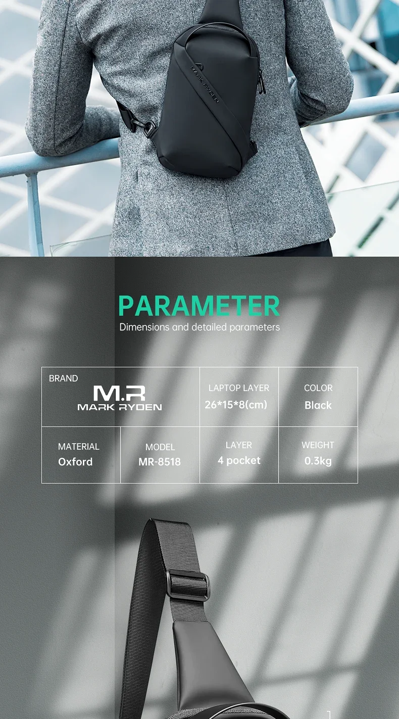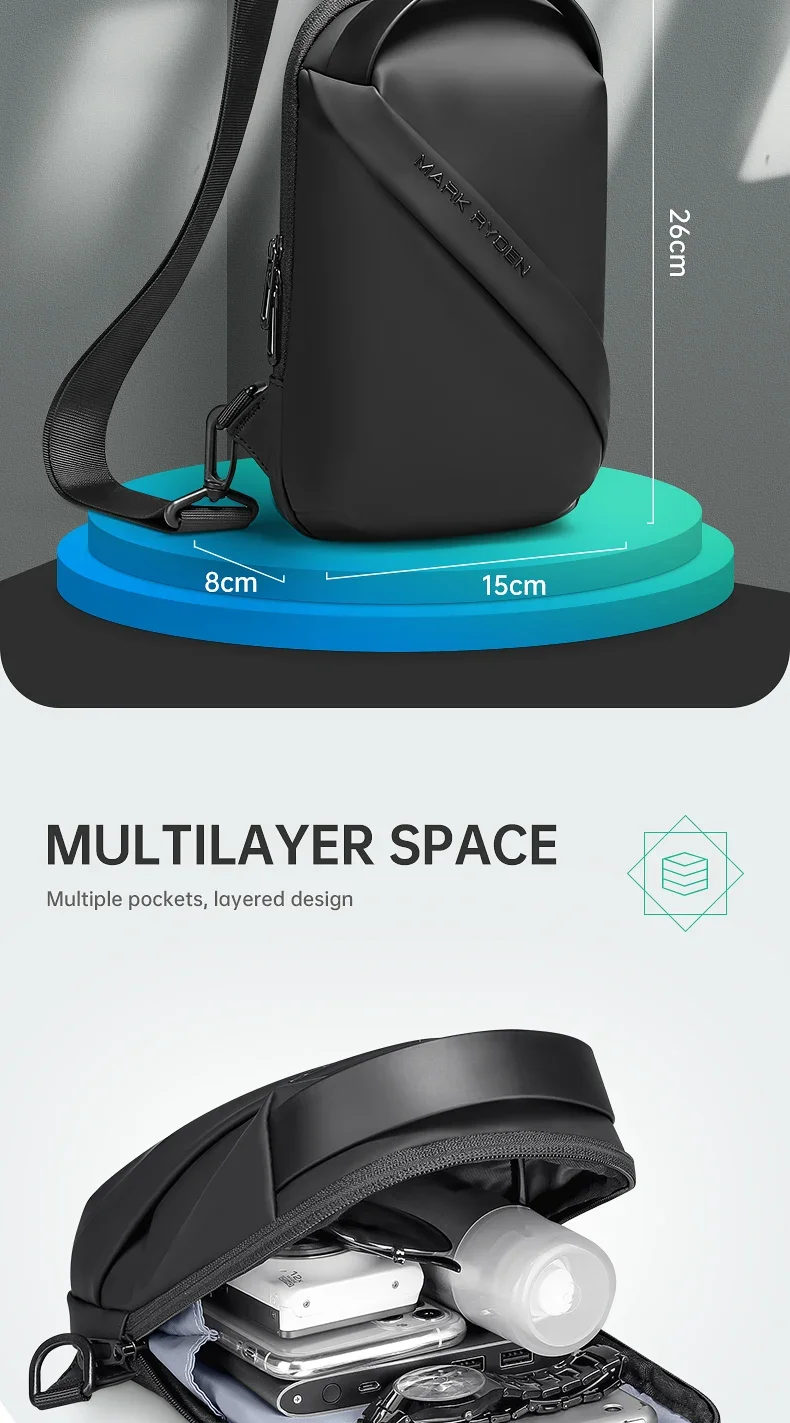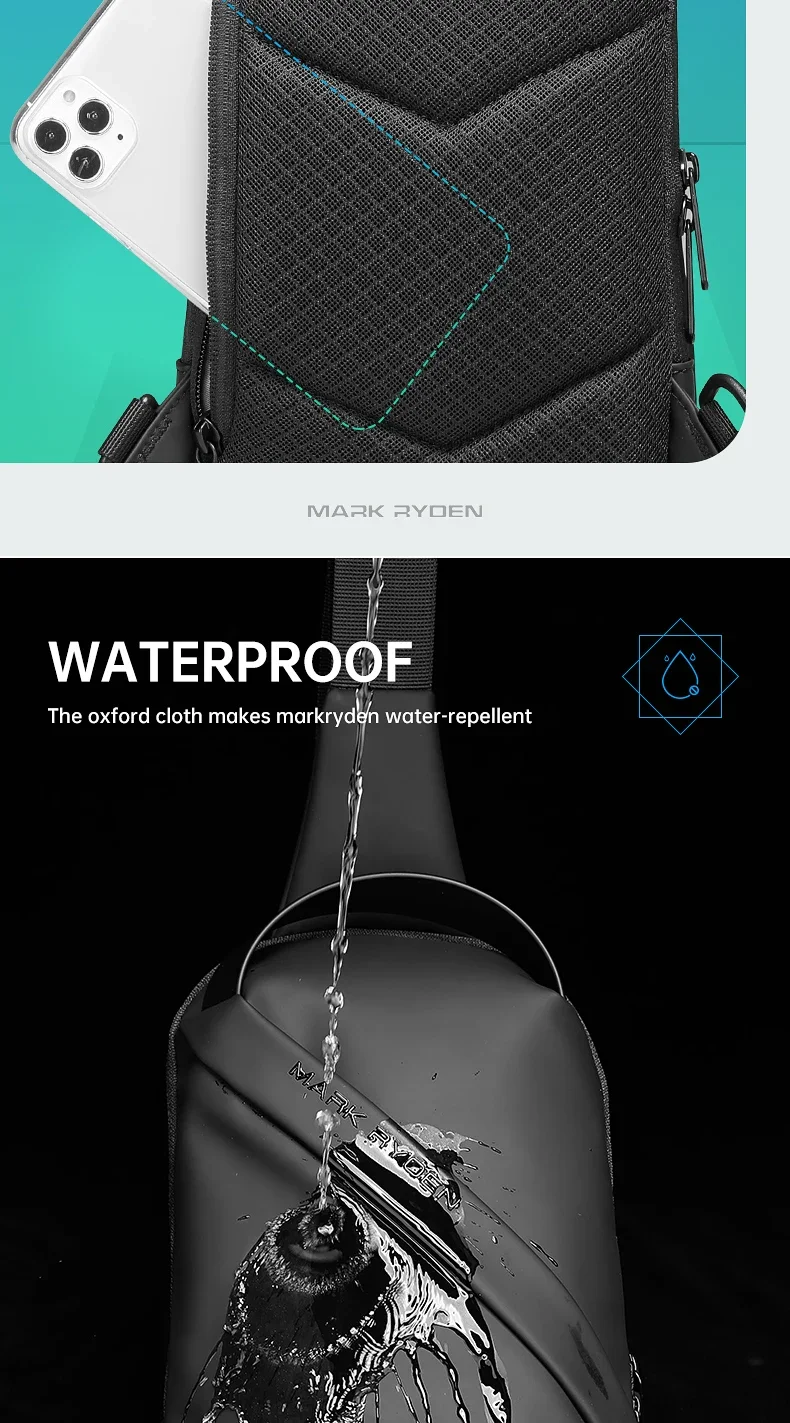 Mark Ryden Men Bag Oxford Sling bag 7.9 inch Male Chest Bag Crossbody Bag For Man Moto Biker Shoulder Bags Black New Fashion Bag