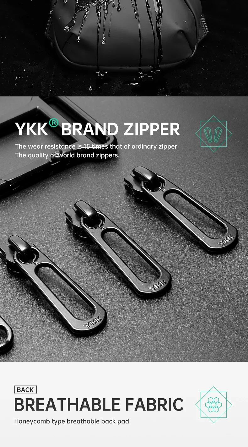 - Features: Large Cpacity, Waterproof,Water Redpellent,Anti-theft,USB Charging