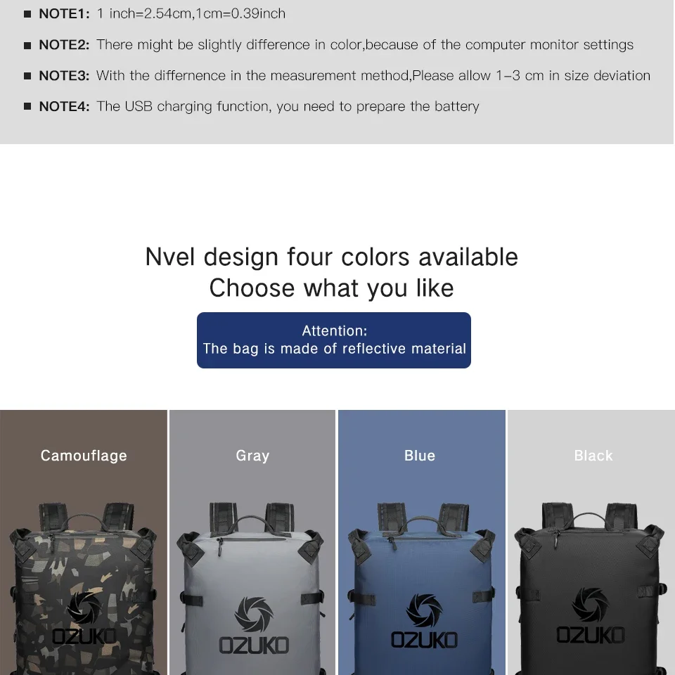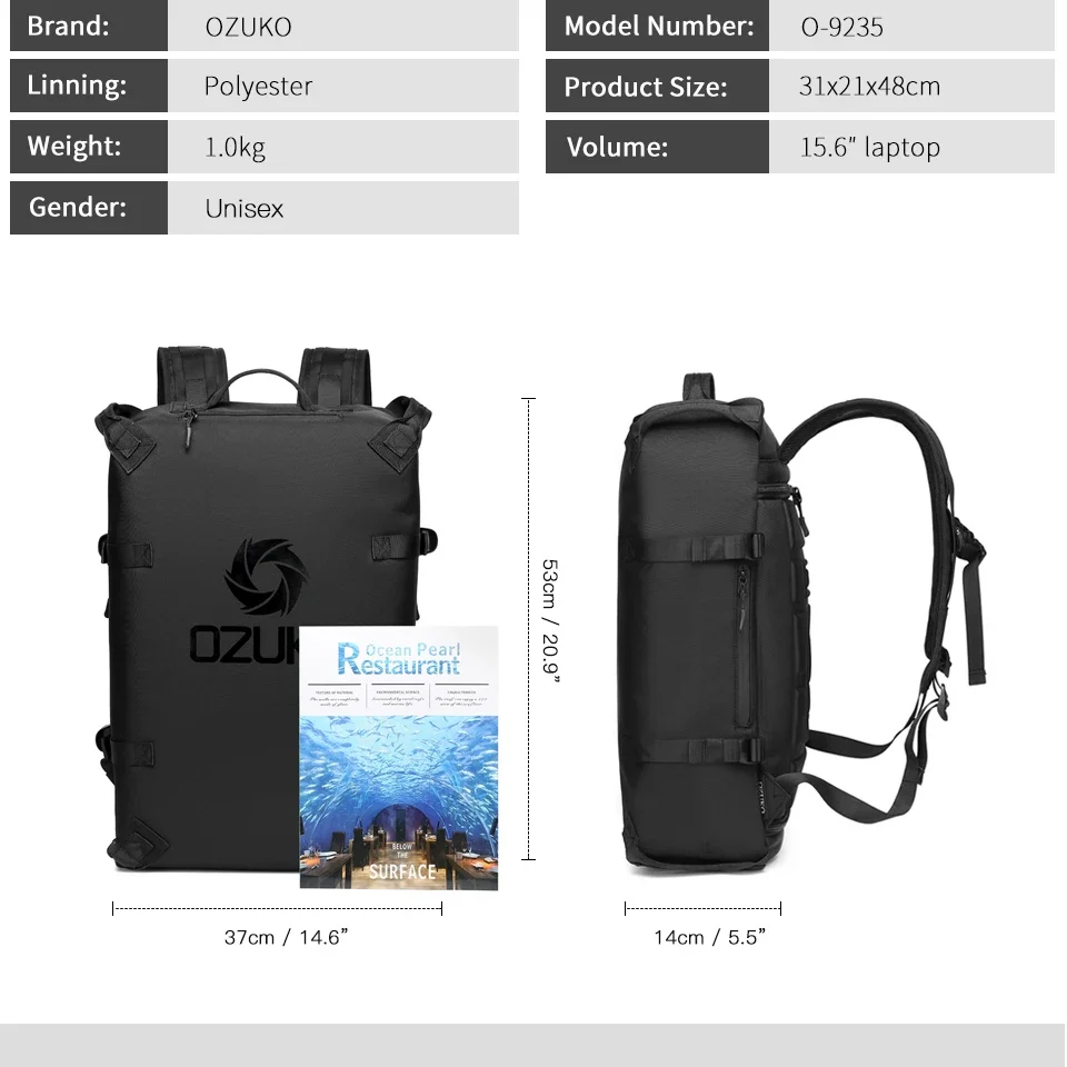 OZUKO Fashion Men Backpack Outdoor Motorcycle Backpacks 15.6 inch Laptop Backpack Teenager Male Waterproof Travel Bag Mochilas