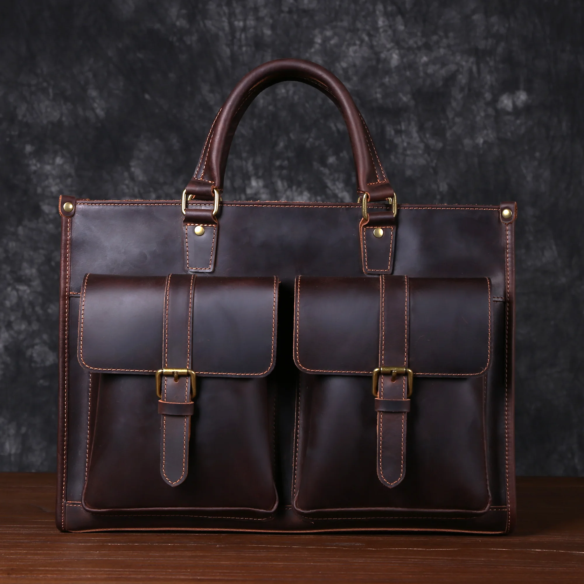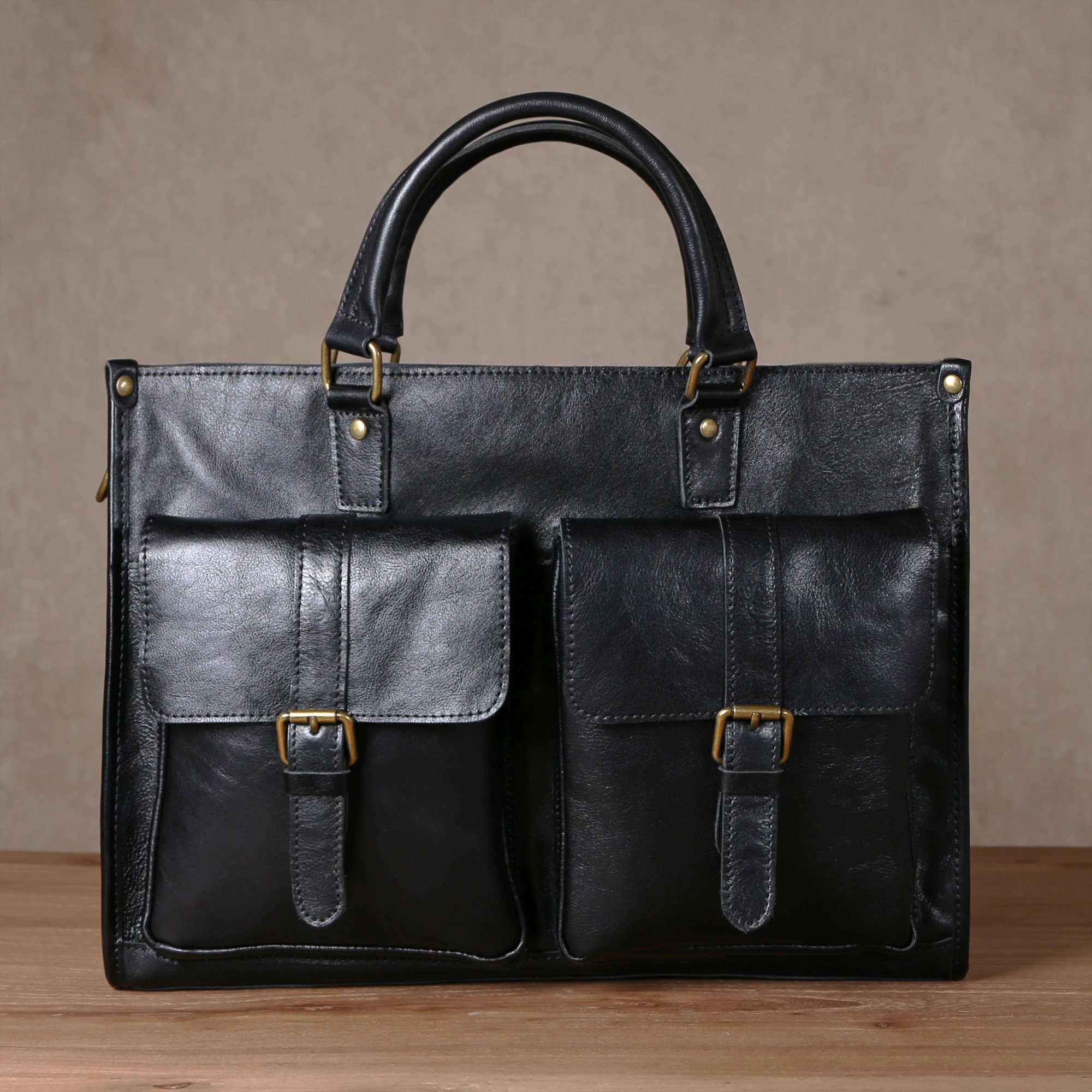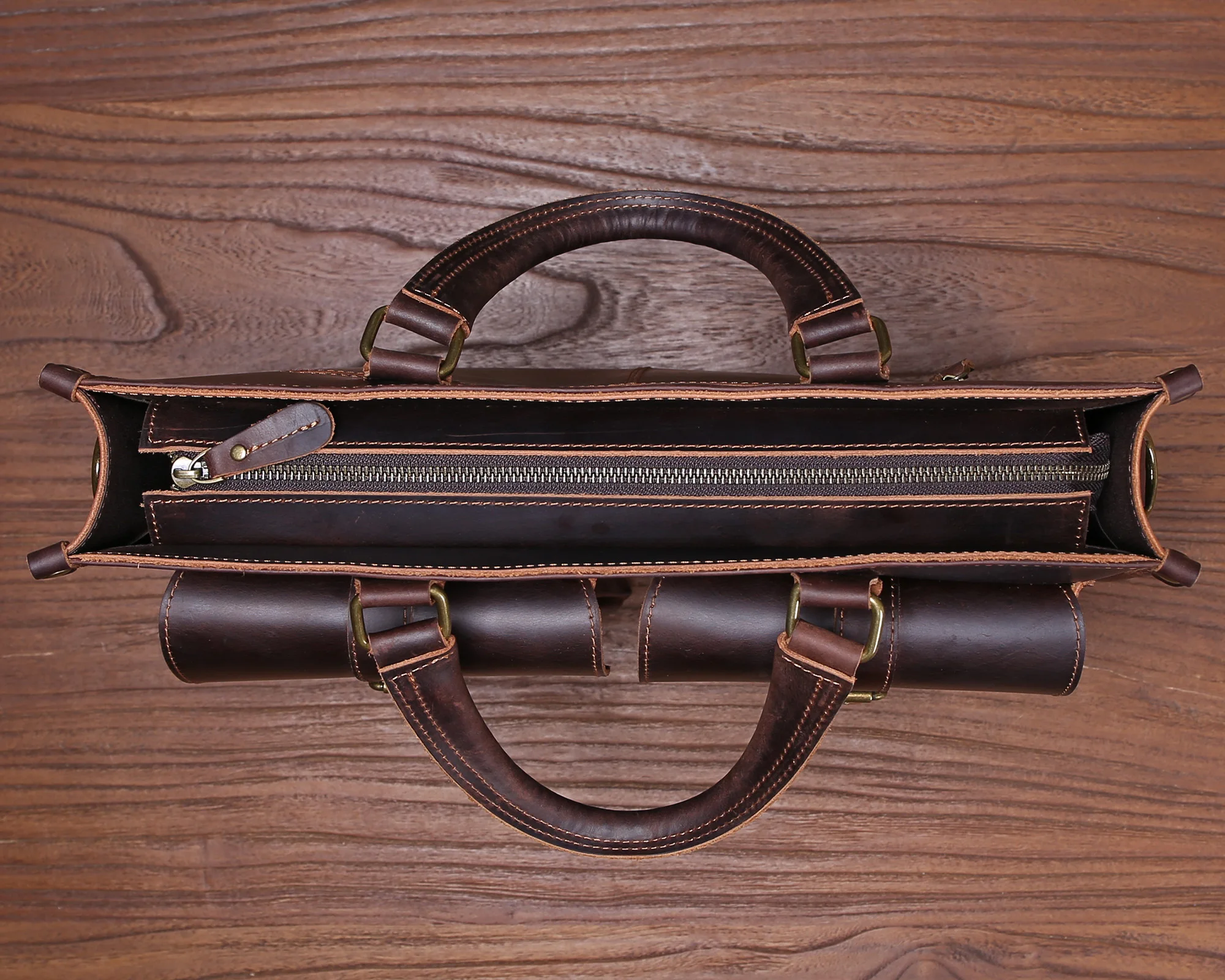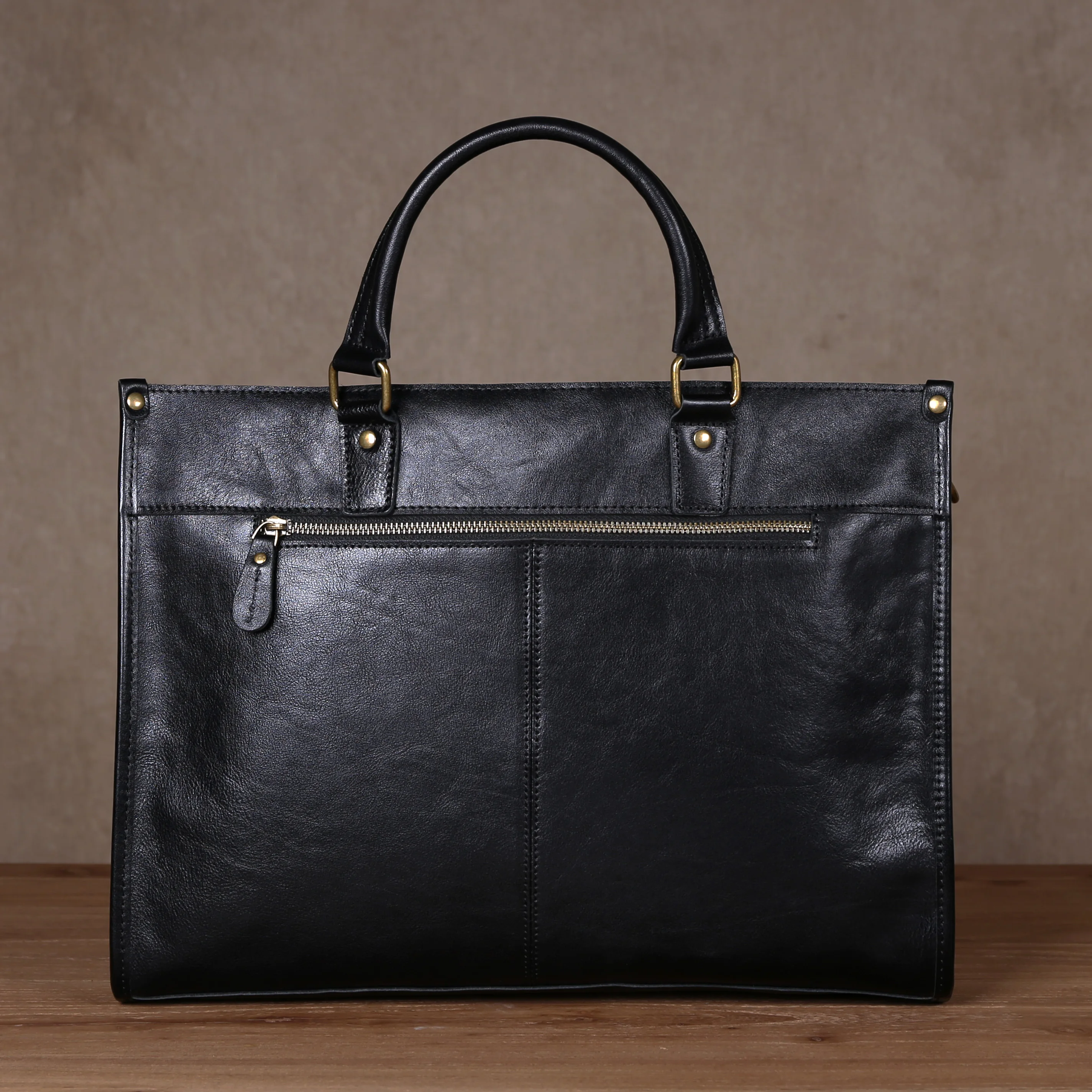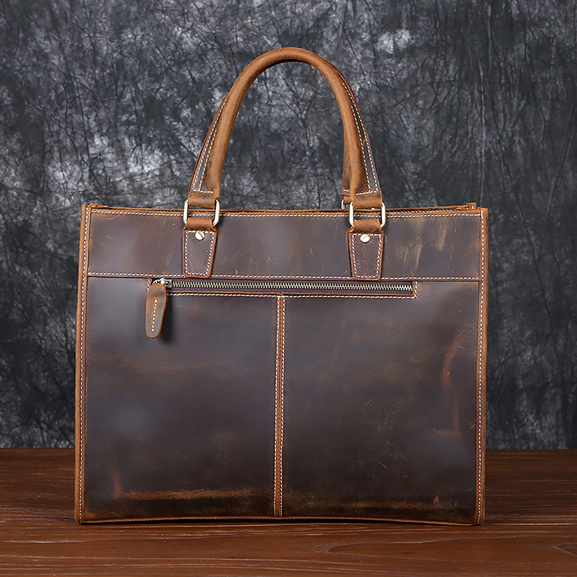 Cowhide briefcase with top layer