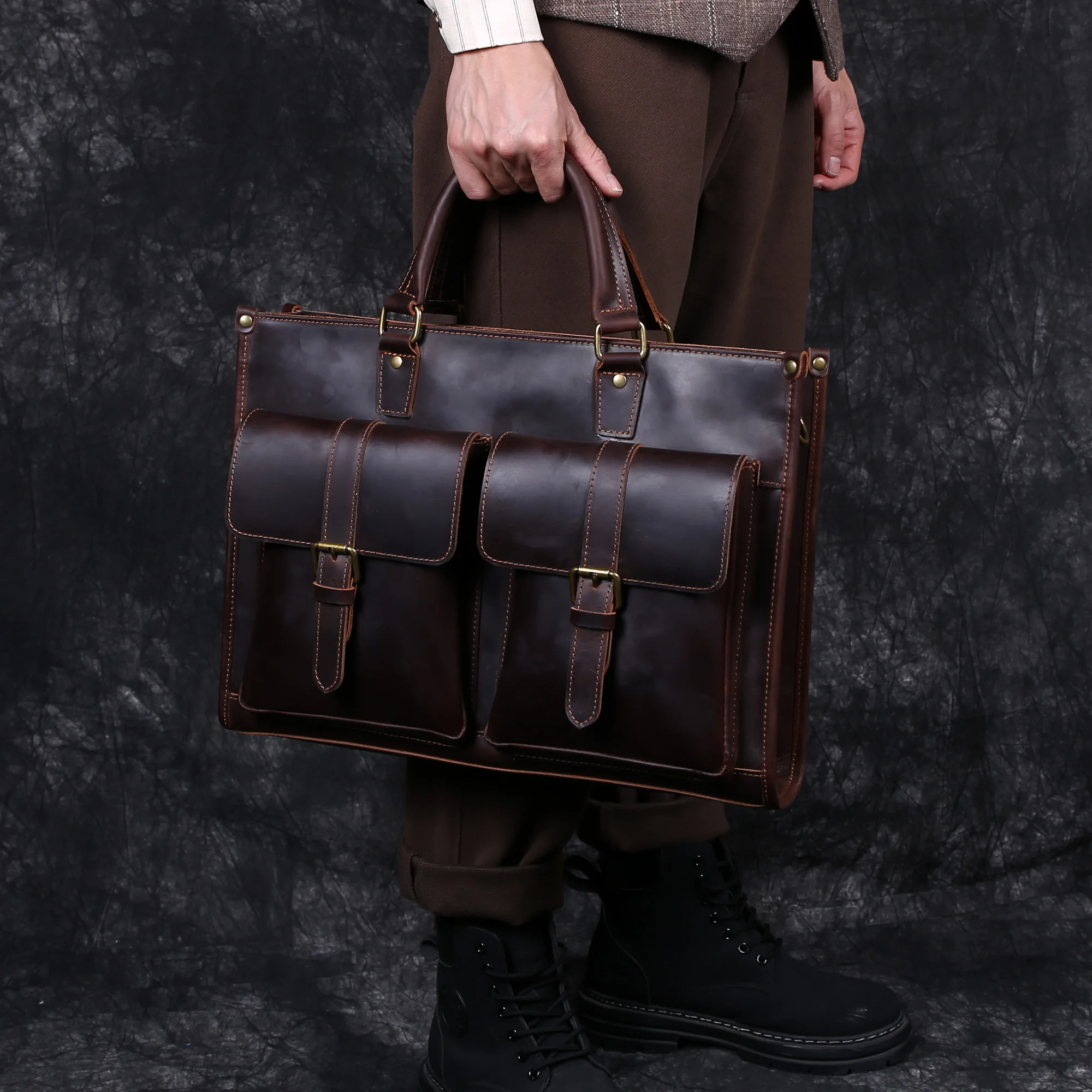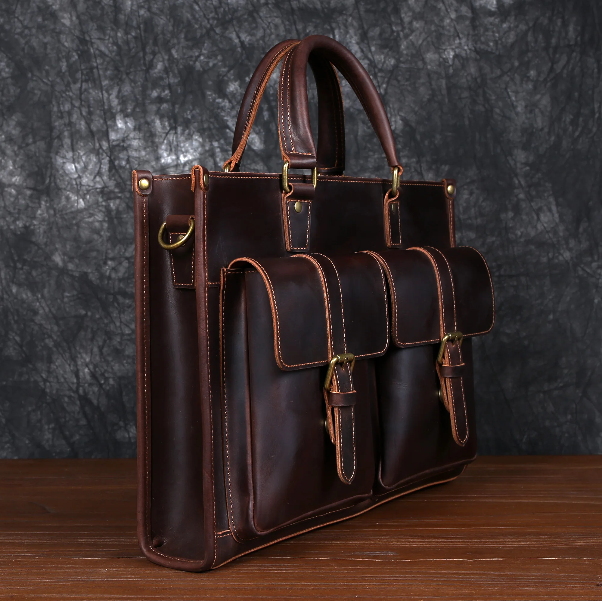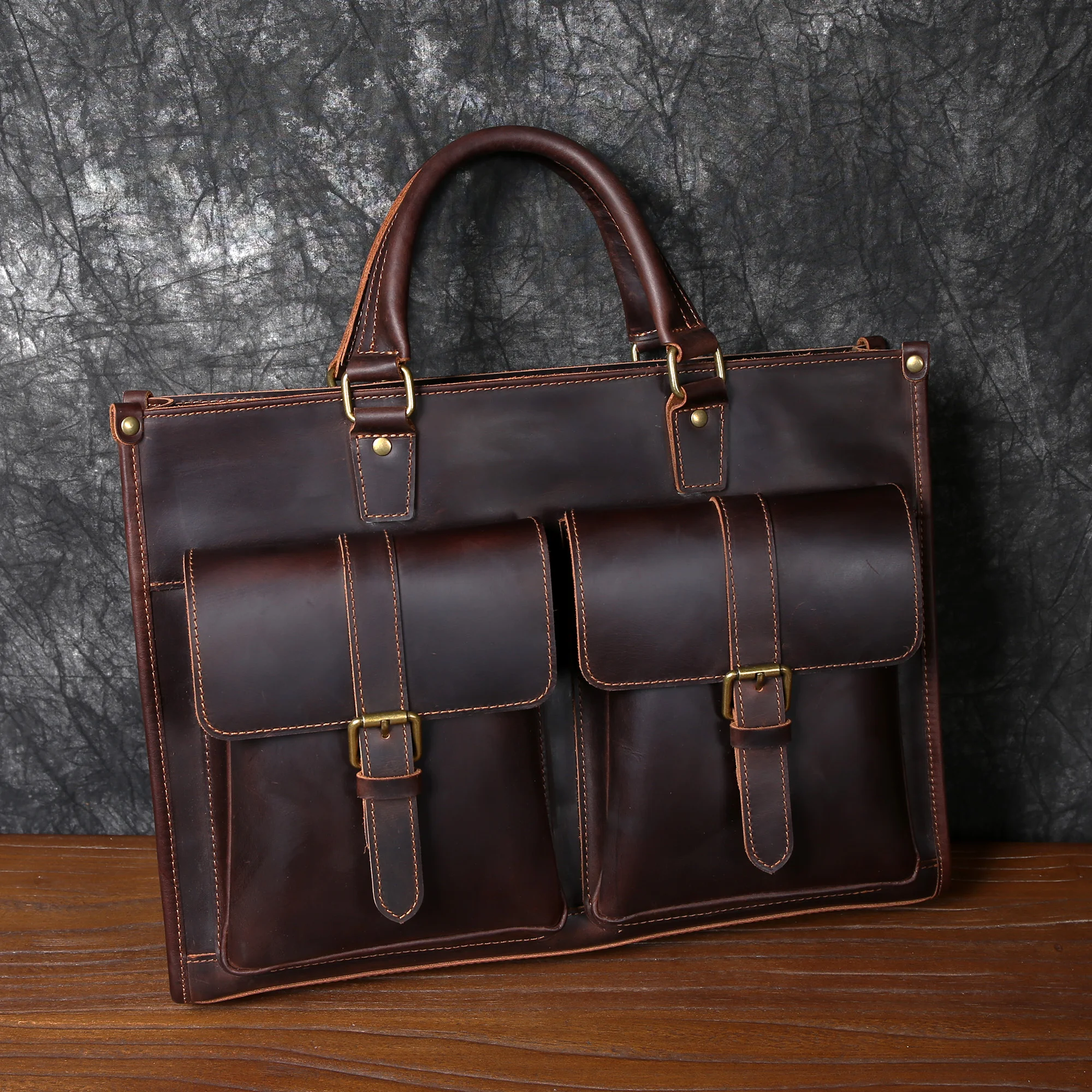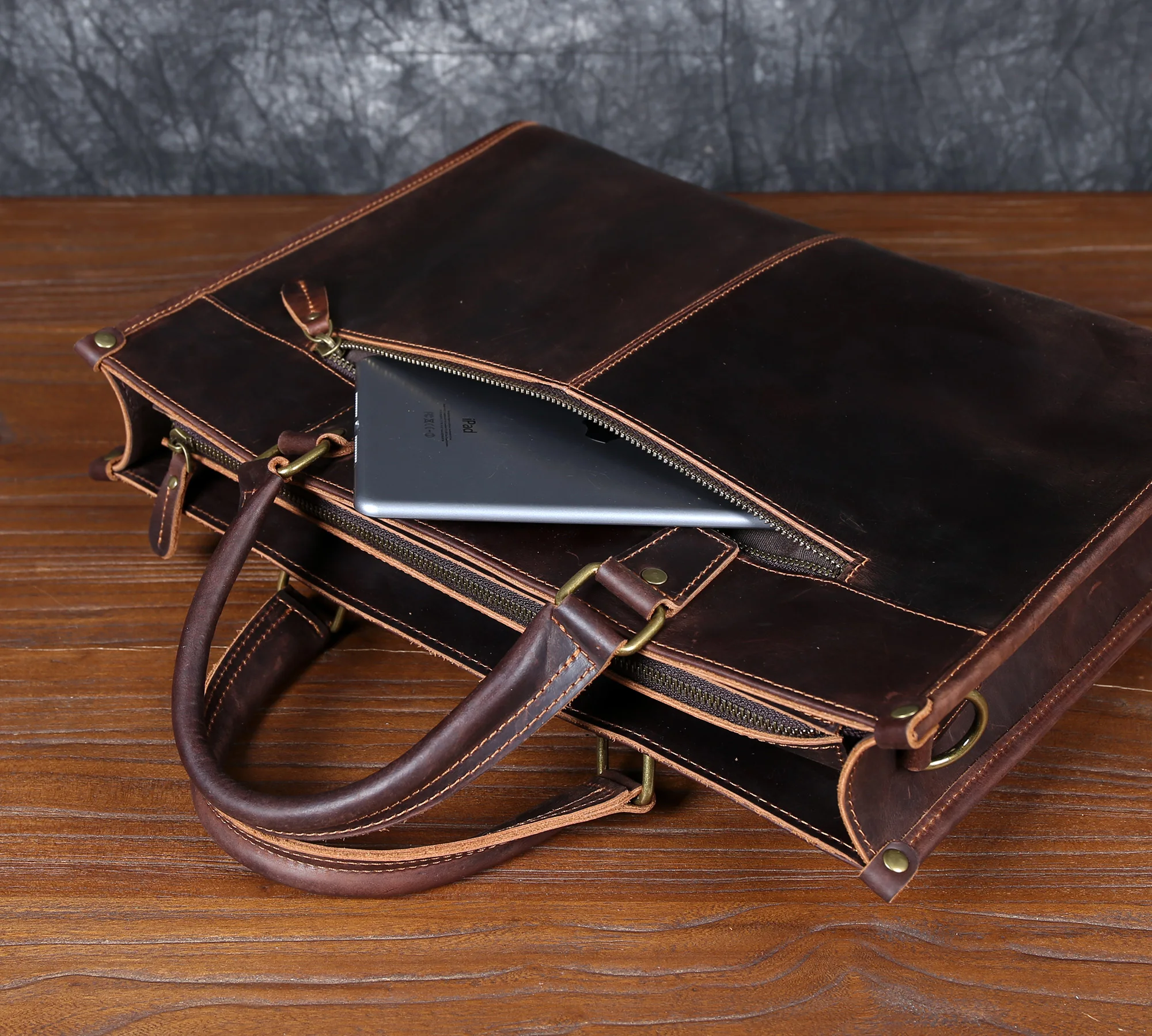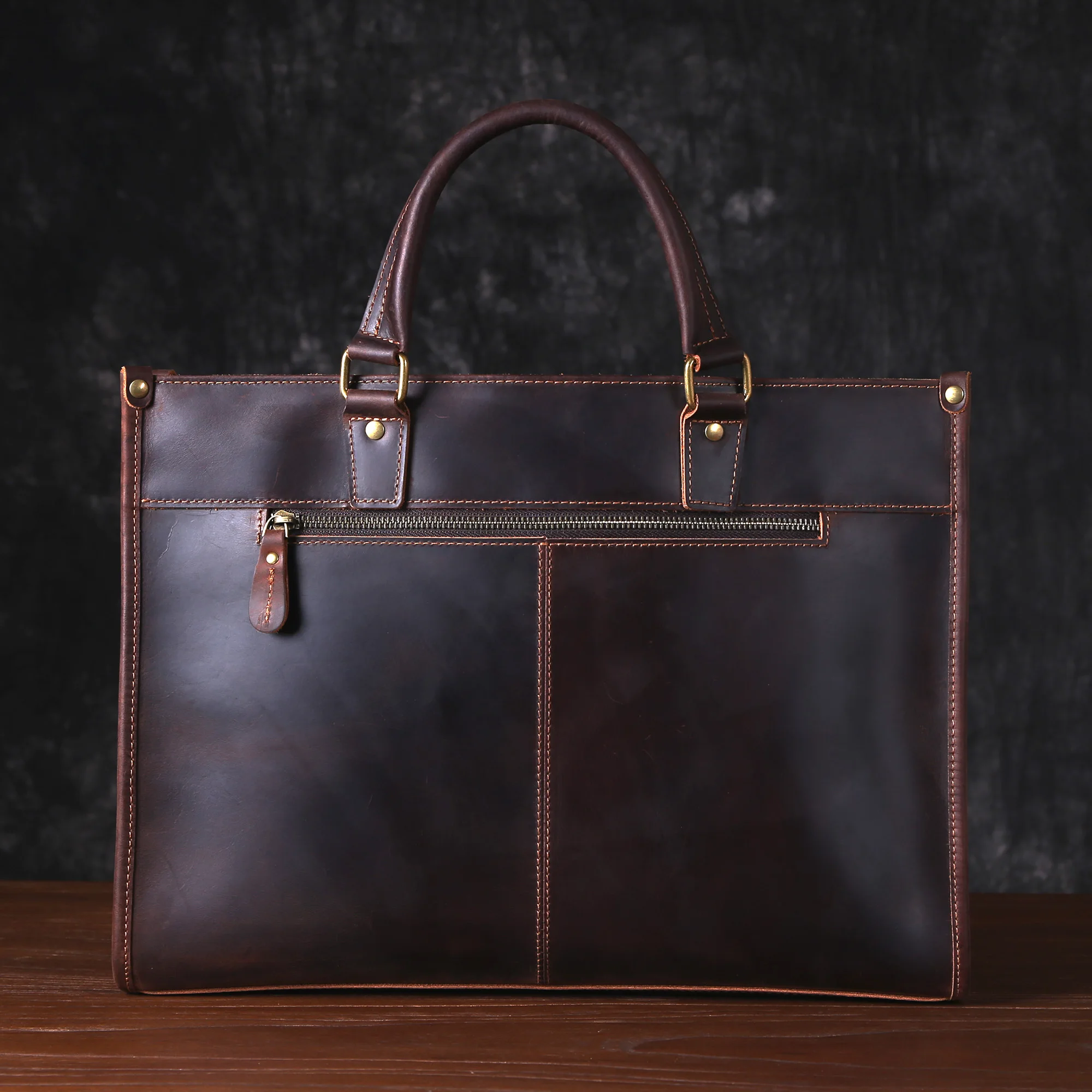 Cowhide briefcase with top layer