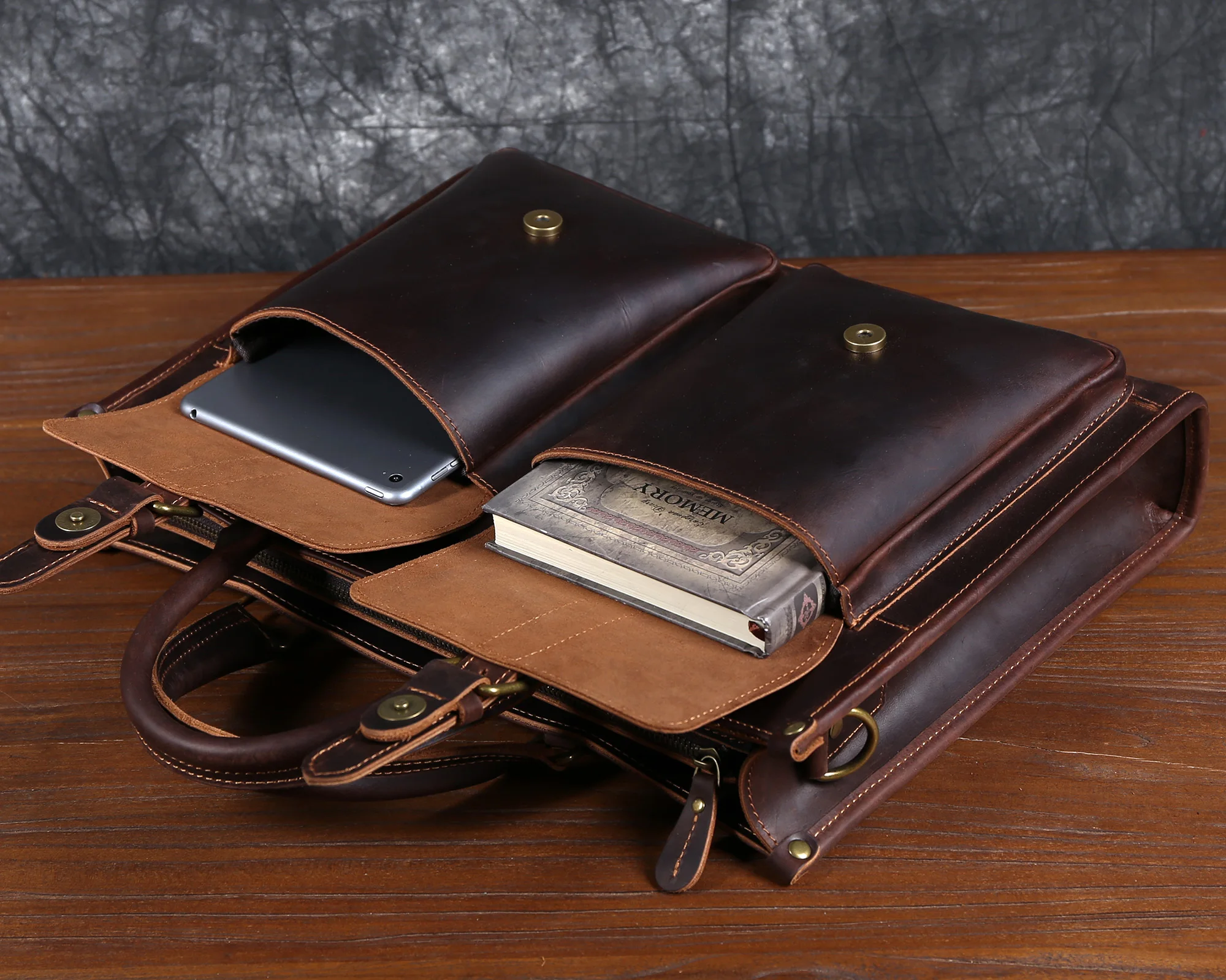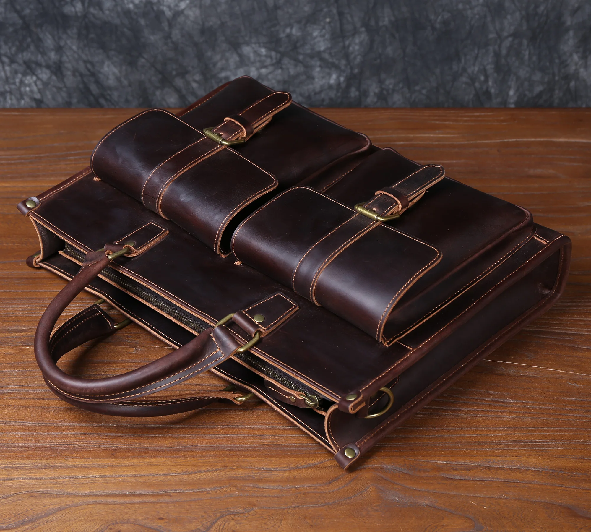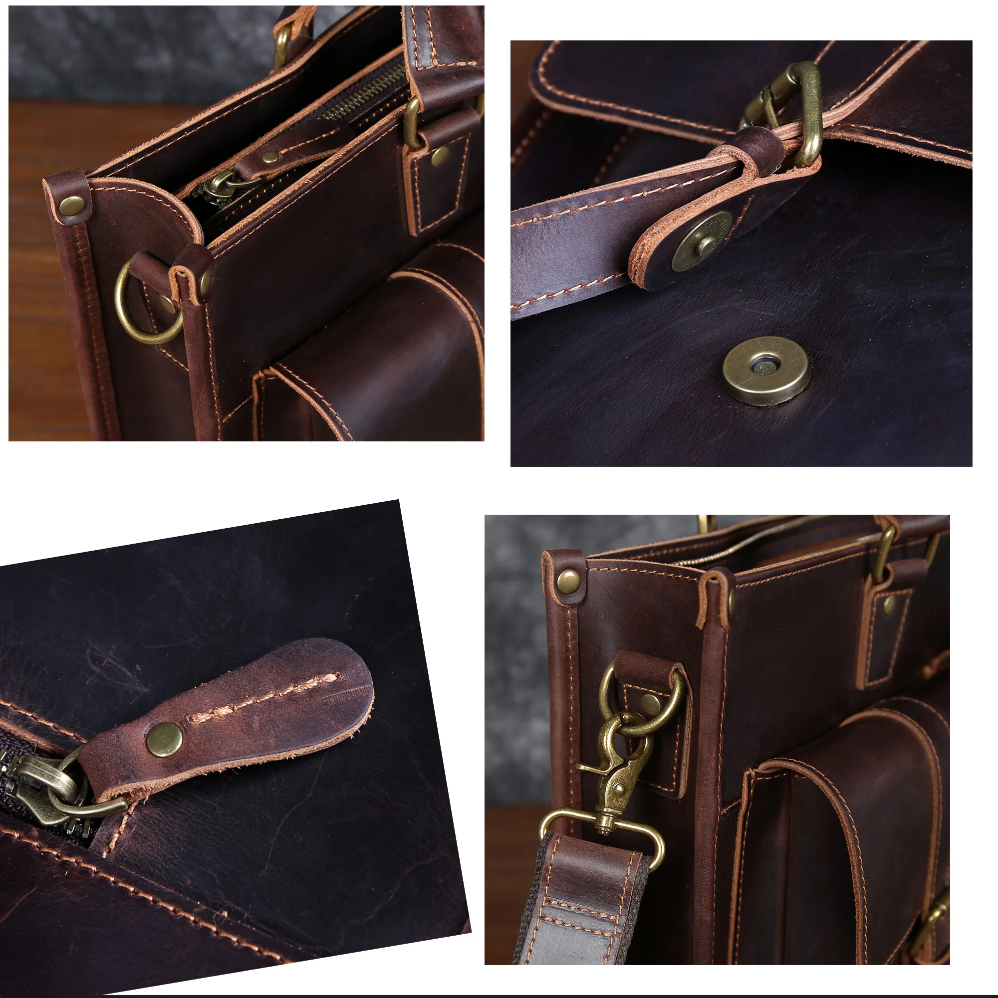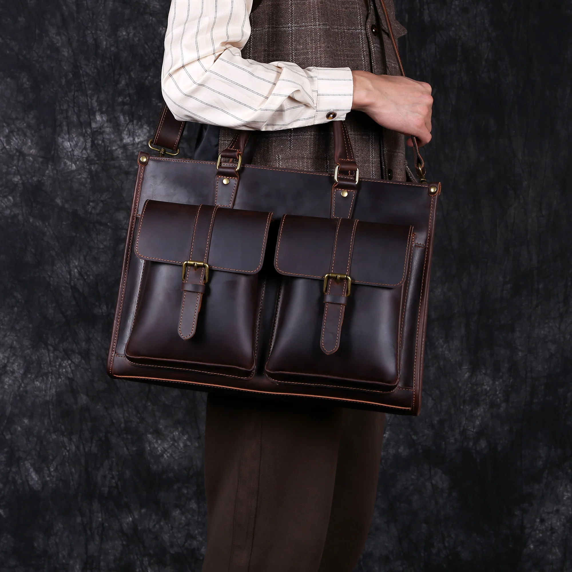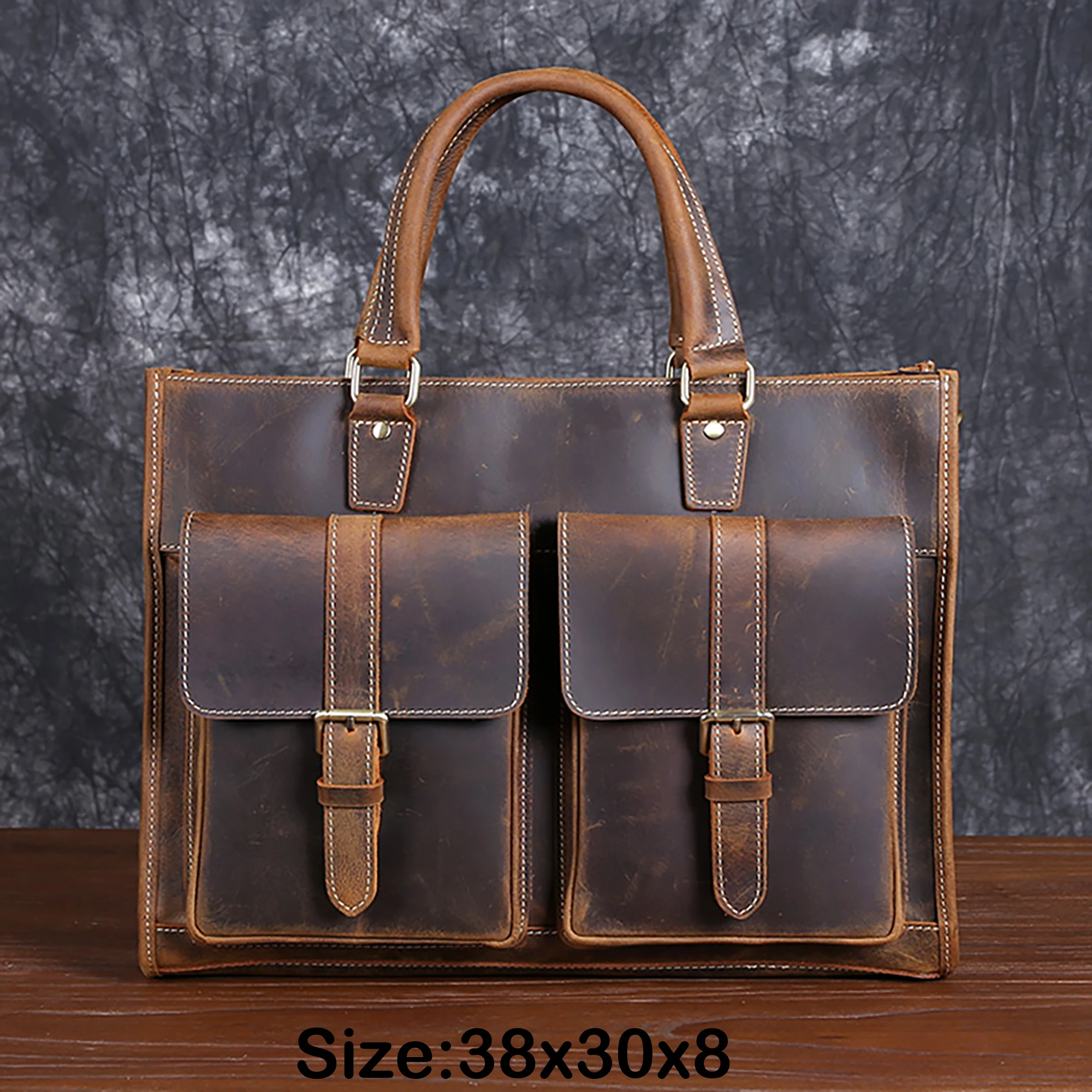 Cowhide briefcase with top layer